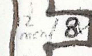 Next, over by the main stair where that rubble filled room is, if you look closely it says "Lt Foot" with a number in front of it. The number is hard to read but it is also 12 with the top curl of the 2 missing - didn't photocopy well. So that says 12 LT Foot.